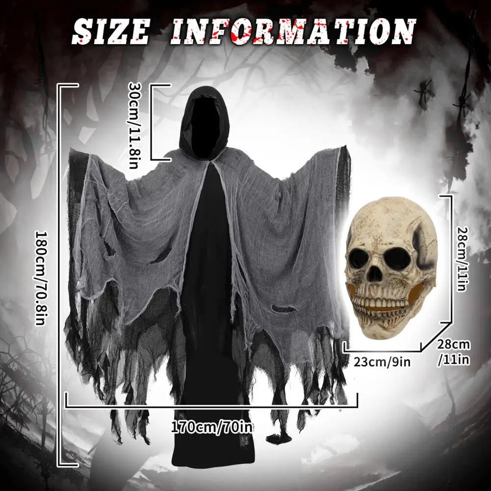 Les personnes souhaitant créer une présence oppressante durant un parcours hanté ou un événement immersif trouveront dans ce déguisement halloween horreur cape et masque une tenue efficace. La cape renforce l’effet de surprise lorsque le porteur apparaît dans une zone sombre ou étroite. Le masque, en cachant les expressions, élimine toute possibilité d’anticipation pour ceux qui croisent le personnage. Cet anonymat contribue à intensifier l’inconfort recherché dans les mises en scène d’effroi.